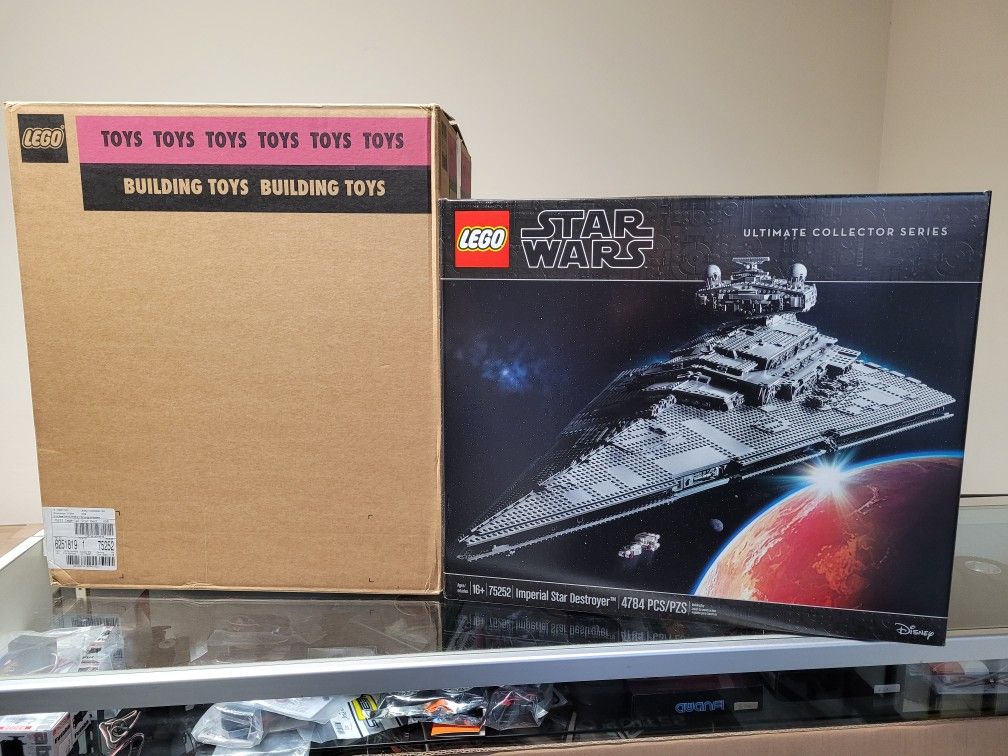 New Star Wars 75252 LEGO Imperial Star Destroyer Original Shipping Box Retired One of the most iconic sets LEGO has ever produced for Star Wars UCS line. Ships USPS or FedEx in original shipper in photos. This is a brand new LEGO Imperial Star Destroyer set, still in its original shipping box. The set number is 75252 and it is part of the Star Wars LEGO theme. The set includes all the pieces necessary to build the iconic Star Destroyer ship, as well as any other characters or items included in the set. The box is in perfect condition and has never been opened. The Star Destroyer is 21.89 inches in height, 18.58 inches in length, and 15.83 inches in width. It is suitable for ages 16 and up and was released in 2020. The set is retired and no longer available for purchase, making it a rare addition to any LEGO collection.