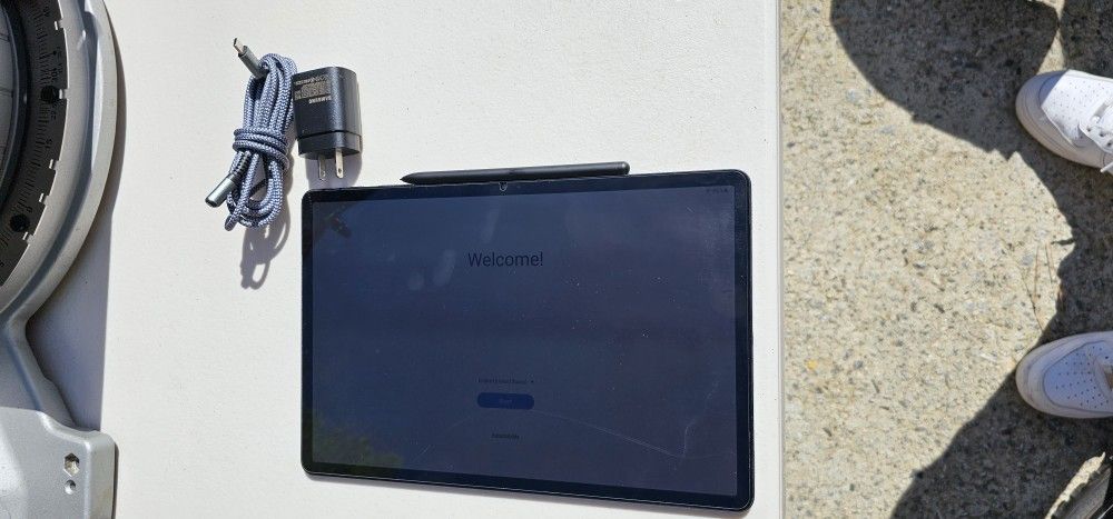 Its basically new and the screen protector had been in since day 1 and the screen protector is cracked not the screen Comes a super fast charging I have the samsung keyboard aswell for 80