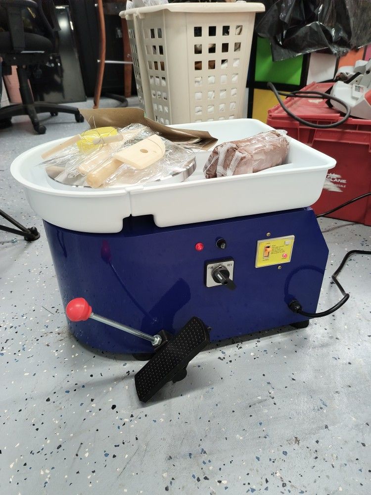 350 w 60-300 rpm. It has never been used and still in perfect condition and it comes with clay ready to go and also unused