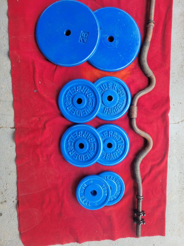 1" HOLE EZCURL BAR WITH. 100LBs. 2-25s. 4-10s 2-5s 11525 S HALSTED DUNKIN DONUTS/ 7111.S WESTERN WALGREENS 90$ CASH ONLY AS IS