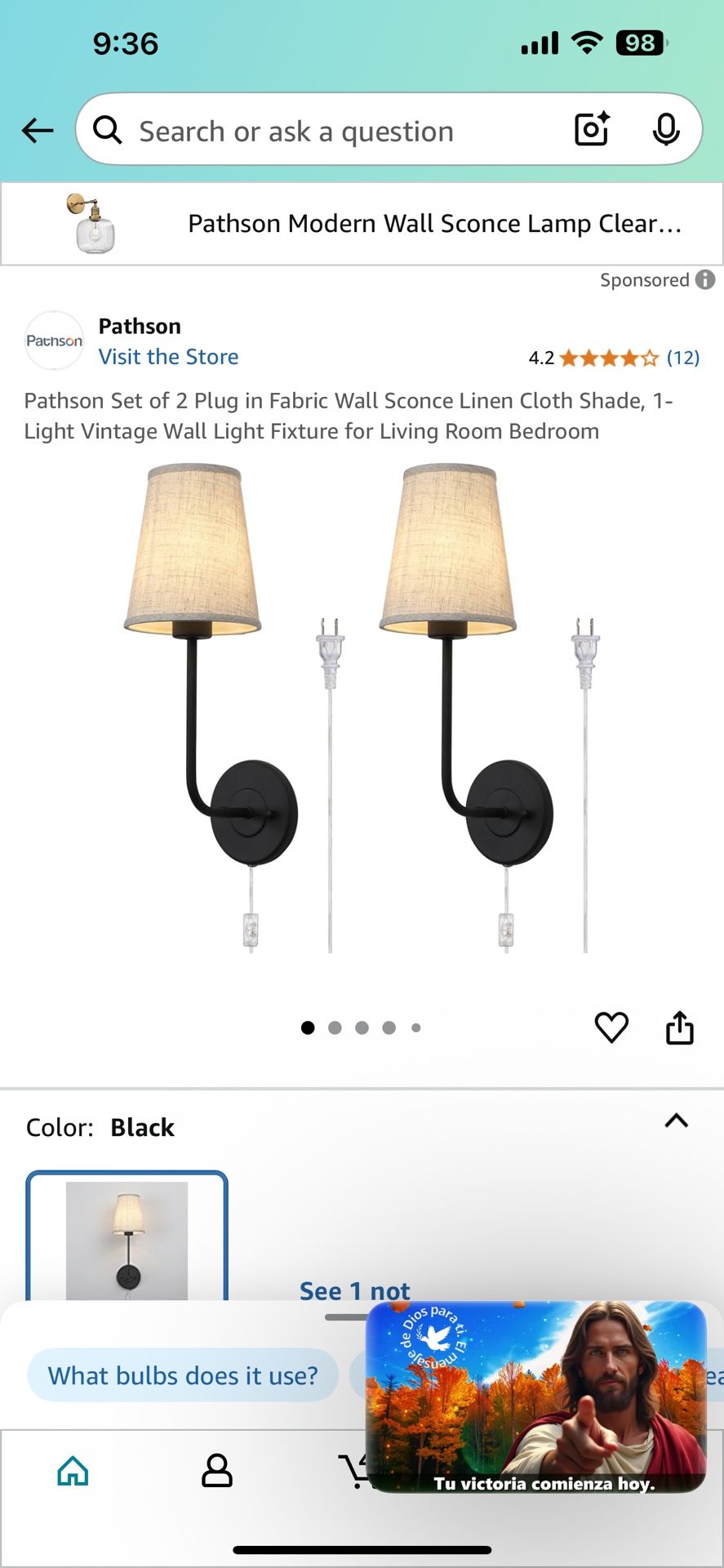 Pathson Set of 2 Plug in Fabric Wall Sconce Linen Cloth Shade, 1-Light Vintage Wall Light Fixture for Living Room Bedroom