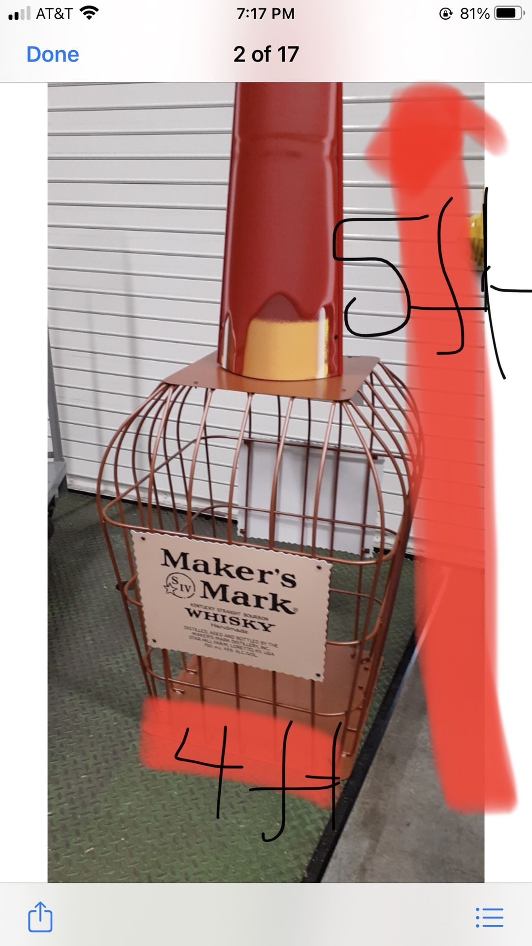 Markers Mark Display Metal Cage Bottle It’s about 4ft wide, 5ft tall Pick up only in SW Gainesville off of Archer Road