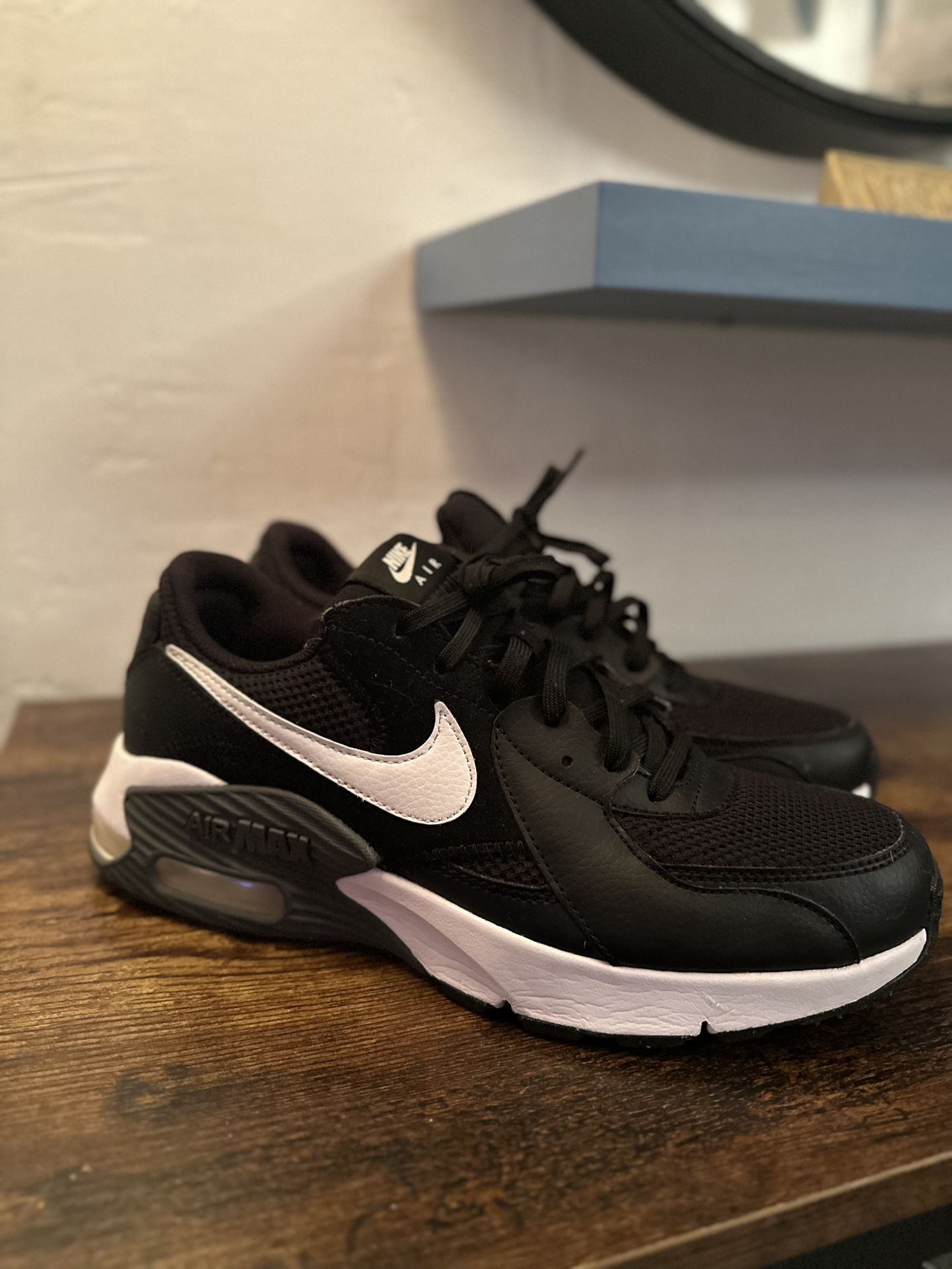 Nike Air Max Black & White – Size 9 – Excellent Condition Step up your sneaker game with these classic Nike Air Max shoes in a sleek black and white colorway. Designed for comfort and everyday style, these sneakers feature: • Iconic visible Air Max unit in the heel for lightweight cushioning • Durable mesh and synthetic leather upper for breathability and support • Crisp white Nike swoosh for a bold contrast • Size: Men’s US 9 • Condition: Gently worn, still in excellent shape with minimal signs of use • Smoke-free home, soles and uppers are clean Perfect for casual wear, walking, or streetwear styling. Fast shipping and secure packaging. Grab them before they’re gone!