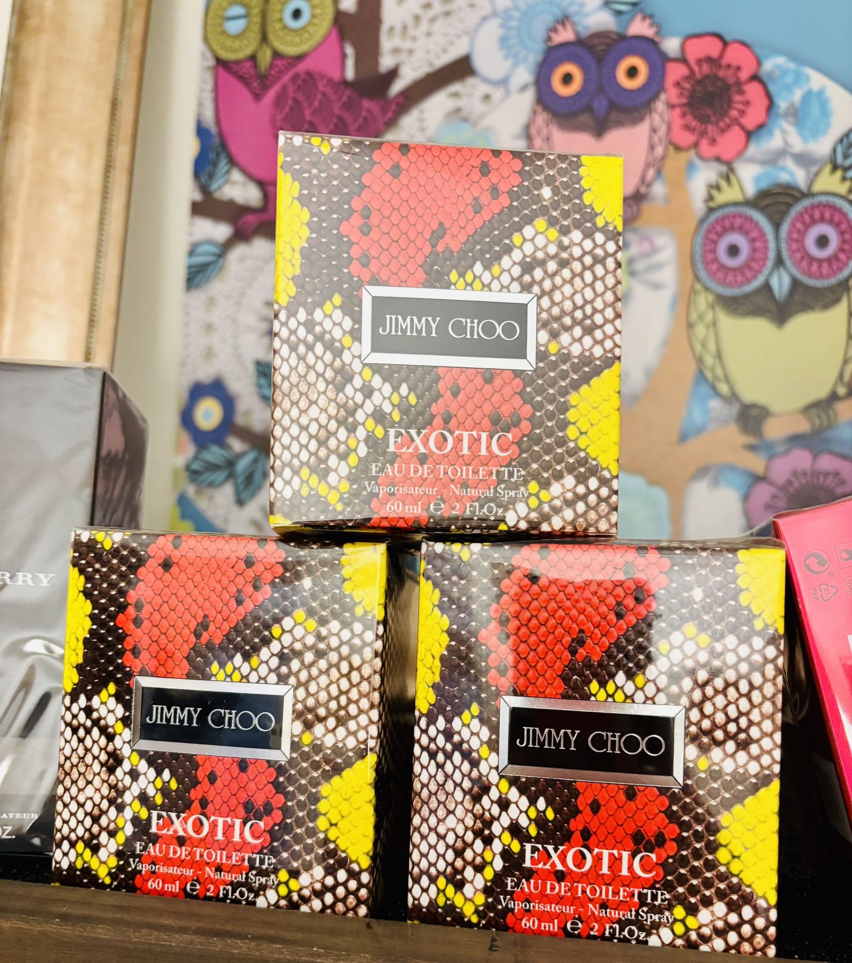 JIMMY CHOO EXOTICA BRAND NEW IN BOX Bright top notes of refreshing blackcurrant sorbet and zesty pink grapefruit open the Exotic fragrance. In the heart, the carnal sensuality of tiger orchid ... So GOOD!!!