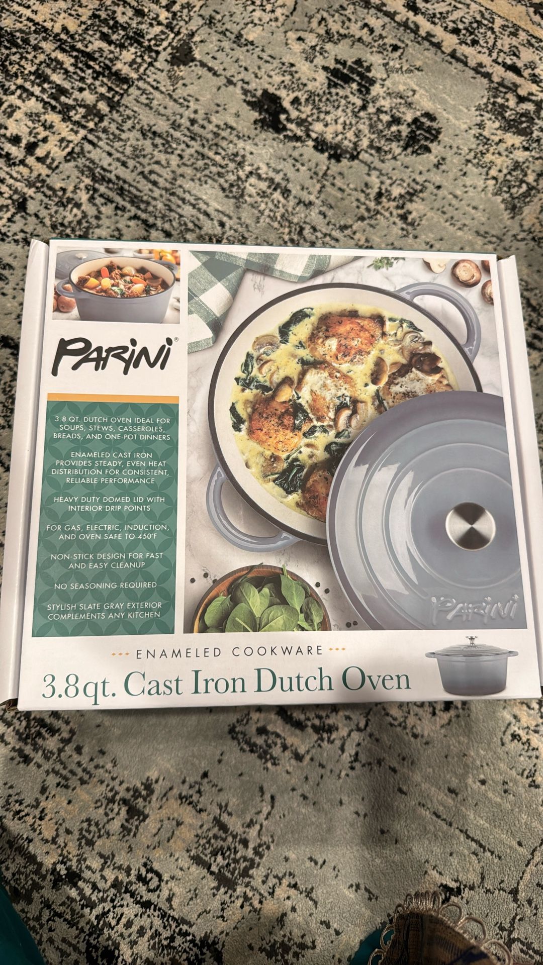 Panini Cast Iron Dutch Oven 3.8 quarts heavy duty non-stick. Slate gray color