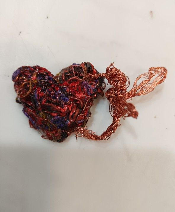Copper Wire Heart & Hummingbird Pin