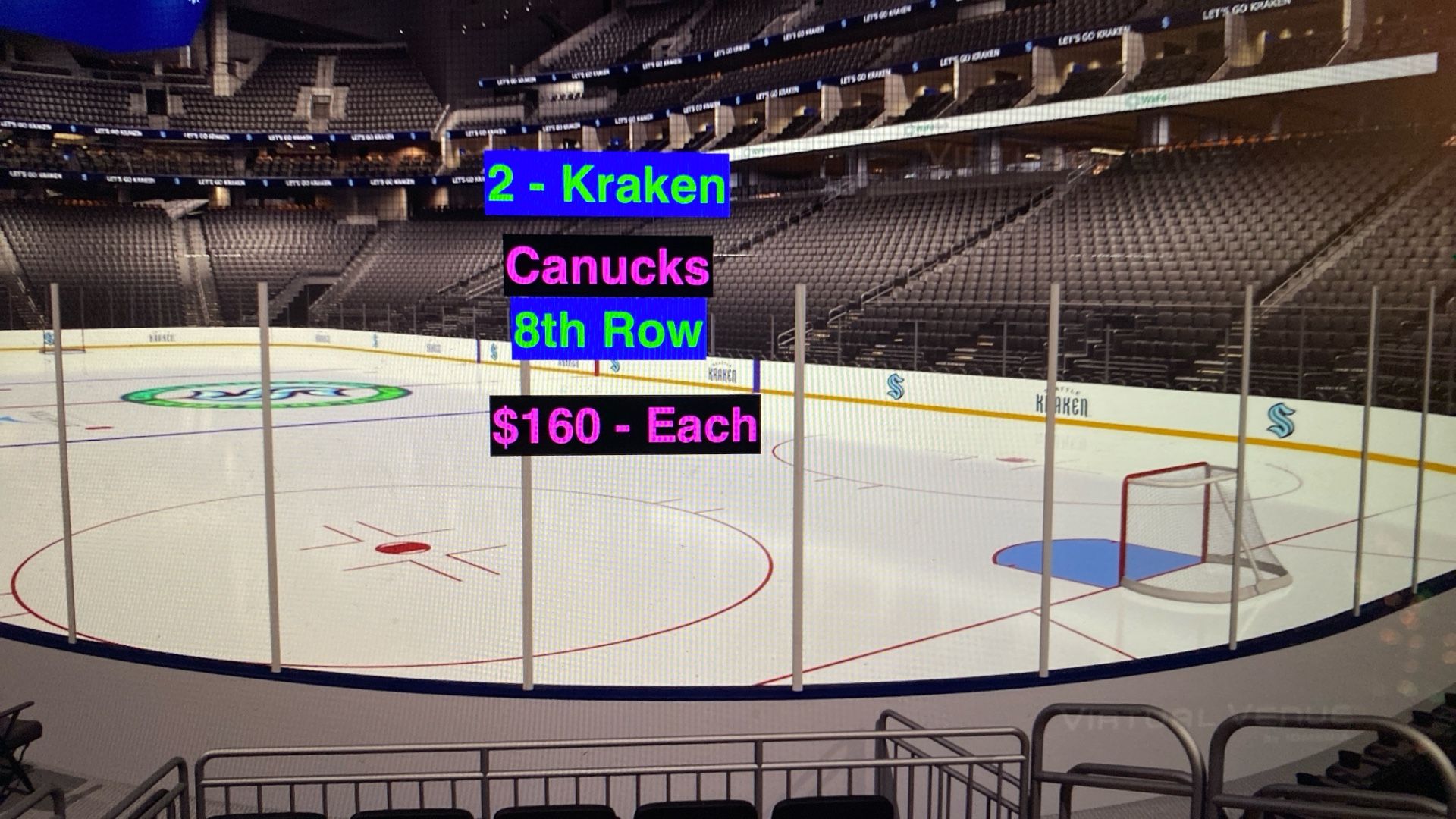 2 Tickets - Kraken vs Canucks Section 22 Row K -8th Row December 29th, 2025 $160 Each - $320 total Let me know if you are interested in any other games you will need a Ticketmaster account so the tickets can be transferred into your account.