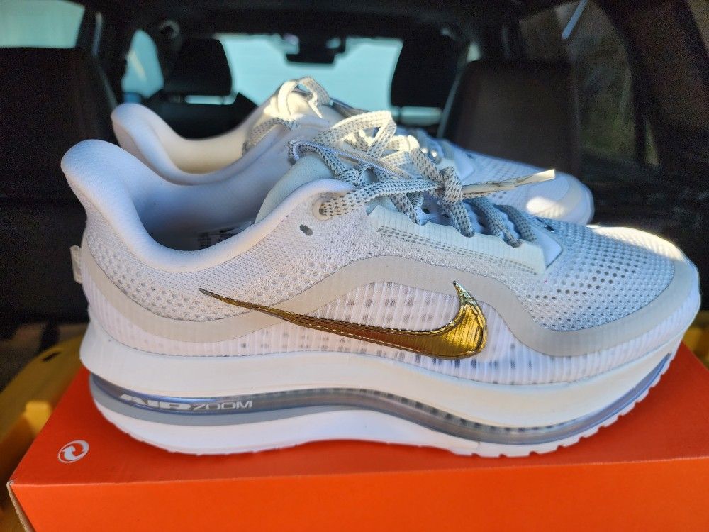 For sale is a pair of Nike Pegasus premium in the white and metallic silver colorway. It features Zoom Air, ZoomX and ReactX cushioning. These are the best cushioning technologies that Nike has to offer all in one shoe. They are 100% authentic with original half box.