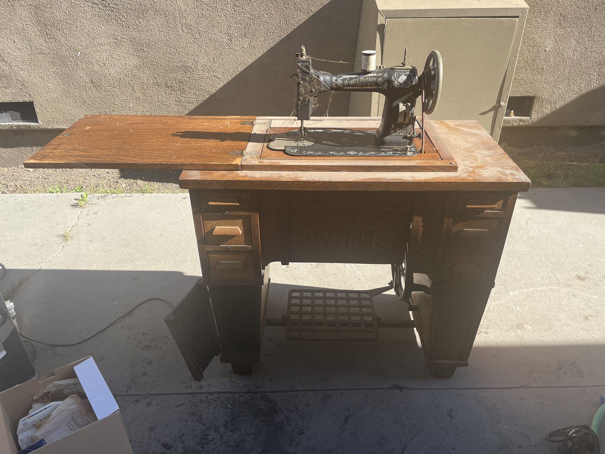 Sewing Machine Cabinet with treadle. White Brand 1950s or earlier