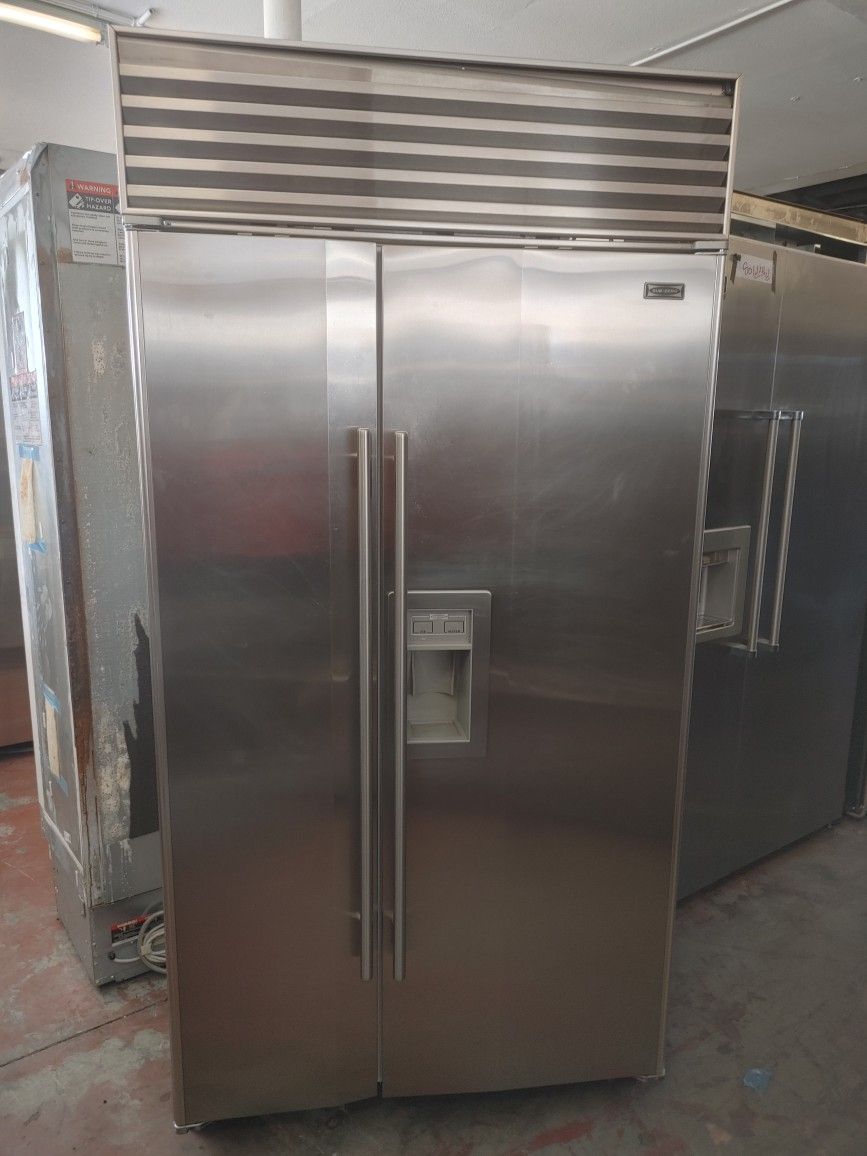Just in today!! We have this beautiful Sub Zero 42” stainless steel side by side built in refrigerator for sale and ready for delivery!! -Sub Zero 42” stainless steel built in side by side built in refrigerator -Water and ice dispenser -42” inches wide -84” inches height -27” inches depth -Like new interior -Like new condition -Freezing and cooling excellent -Has been checked and reviewed by our technician for performance and parts reviewing and is working great -Comes with a 90day warranty -Delivery service available -Please message for further detailed information or to order over the phone and have it delivered to your home!!