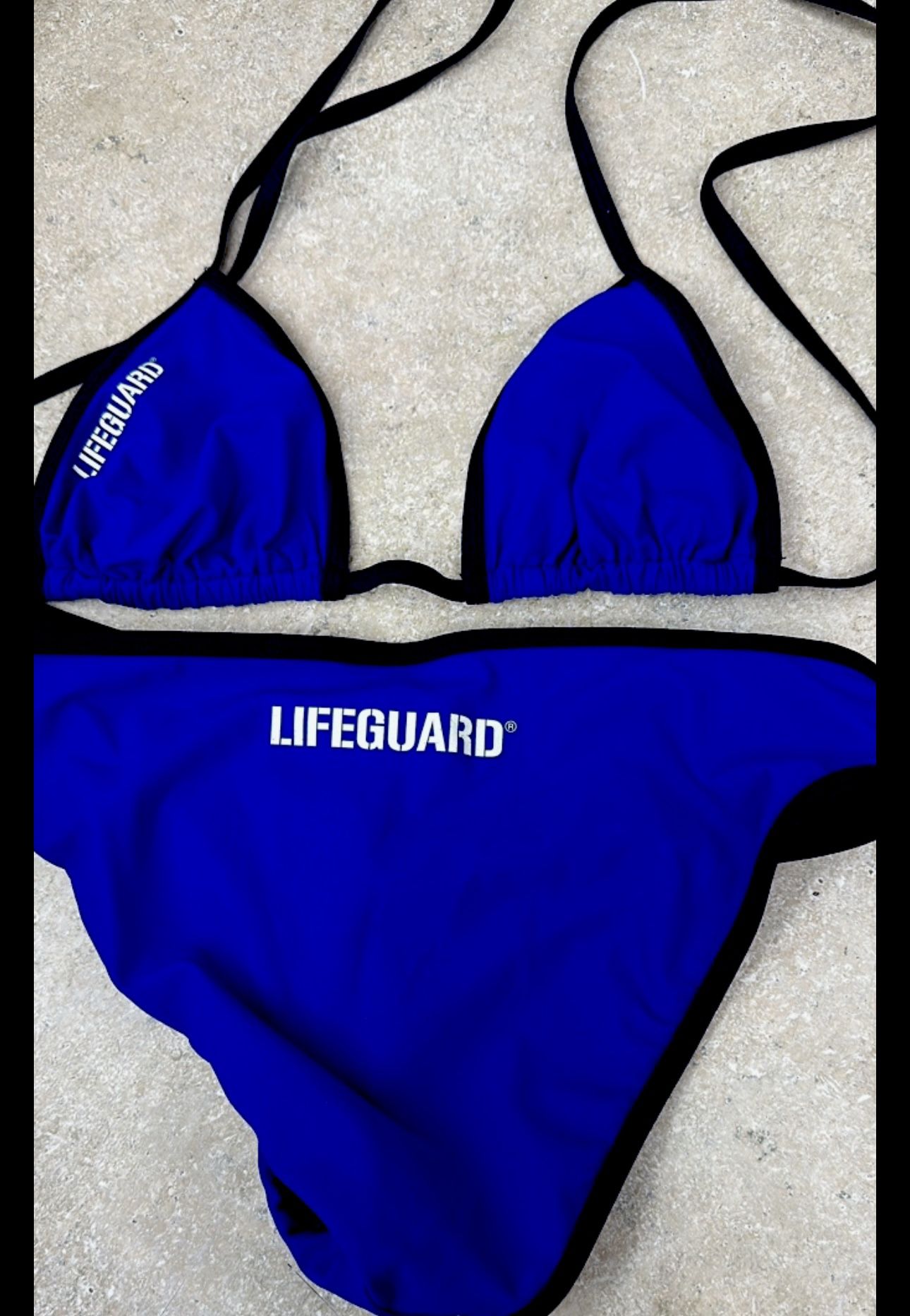 Stand out on the beach or at the pool with this striking royal blue Lifeguard® bikini! Only worn once — practically brand new and in excellent condition. Top is a classic triangle cut with adjustable black ties, and both bottom styles (cheeky/thong and full coverage) are included, giving you two versatile looks in one purchase. Soft, stretchy, and built to last — this suit is flattering, bold, and perfect for summer! Grab it now before it’s gone! Hashtags: #LifeguardBikini #BikiniSale #SwimwearDeals #BeachVibes #SummerStyle #SwimsuitSale #CheekyBikini #FullCoverageBottoms #OnlyWornOnce #BikiniSeason #HotDeal #LifeguardStyle