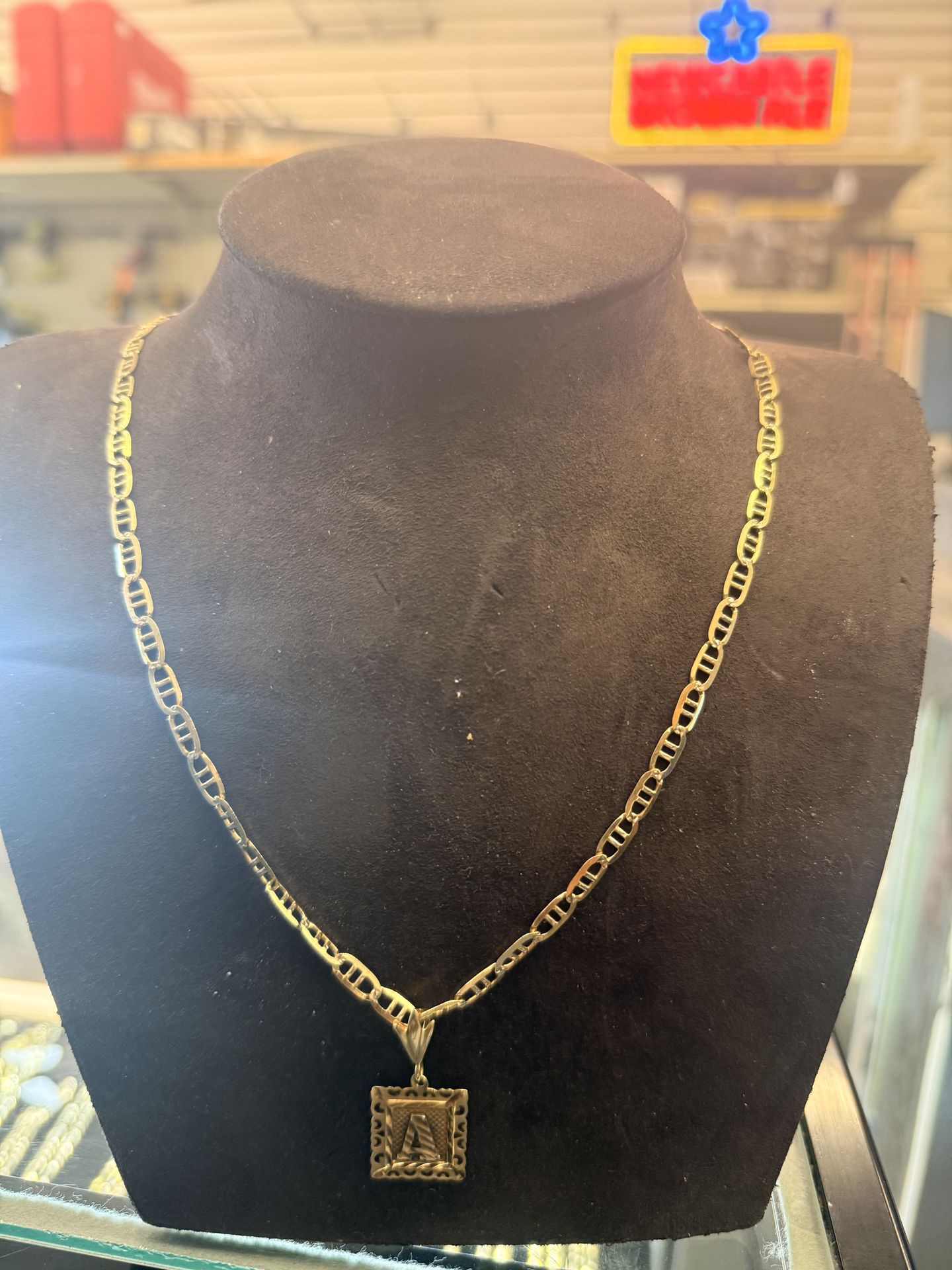 10KT Gucci Link Chain W/ “A” Pendant