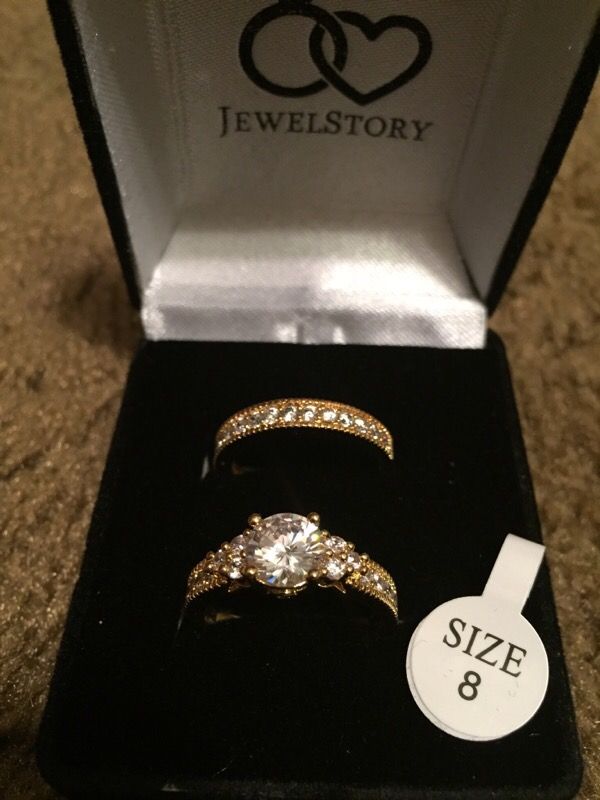 18 kt gold plated cubic zirconia wedding ring set engagement bridal bands brand new !! Size 8 brand new !!!! I have pay pal to ship it