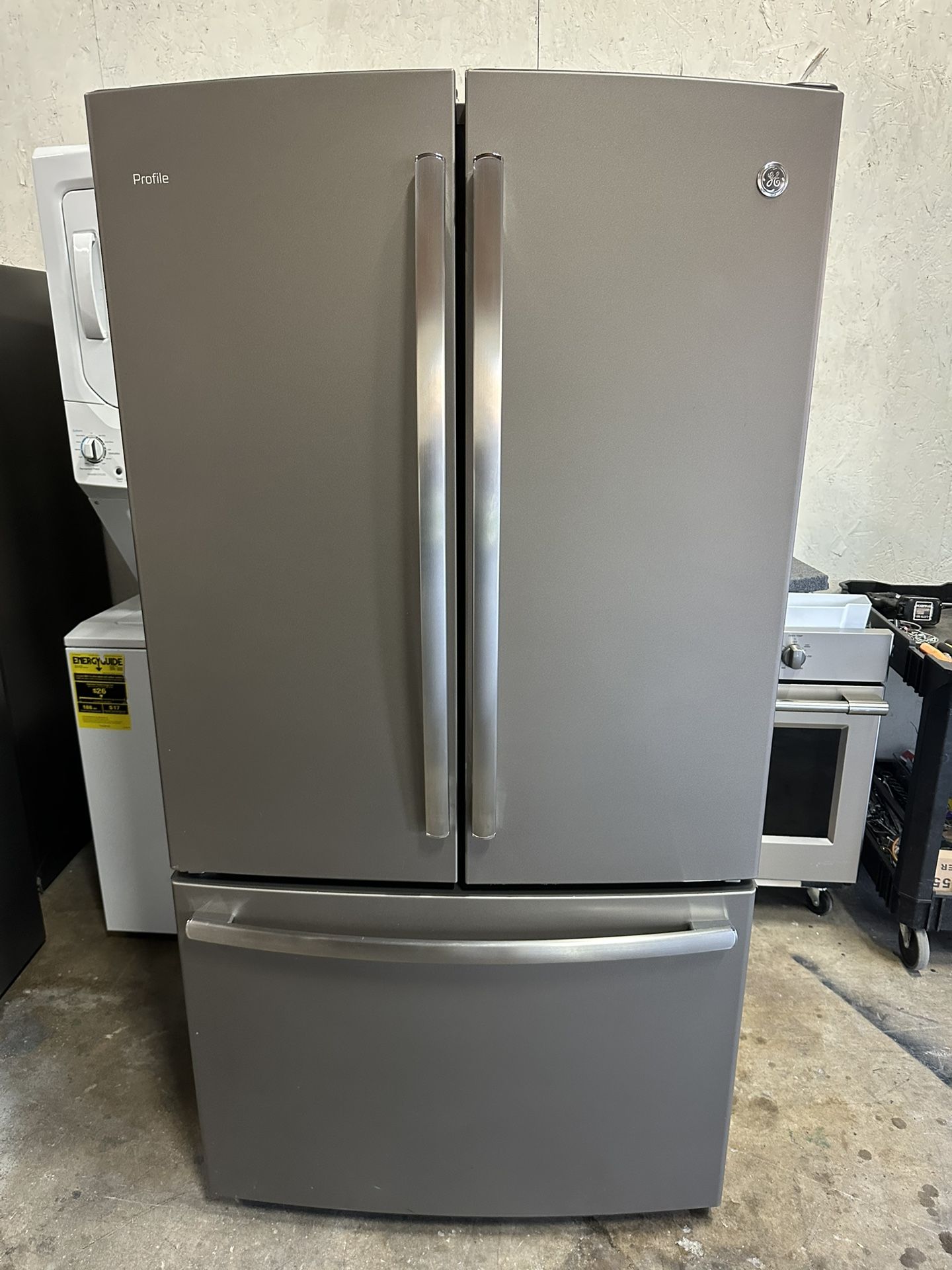 Near New GE counter depth Frenchdoor 21.3 ft.³ Water and ice inside can deliver Retail price $2900 23.1 cu. ft. French Door Refrigerator in Slate, Fin