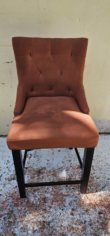 Sillas Altas de Madera Tapizado En Tela Color Naranja. Set de 2. WOODEN STOOLS