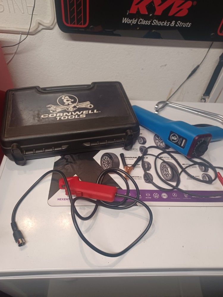 Professional Cornwall timing light with advance, snap on distributor wrenches.