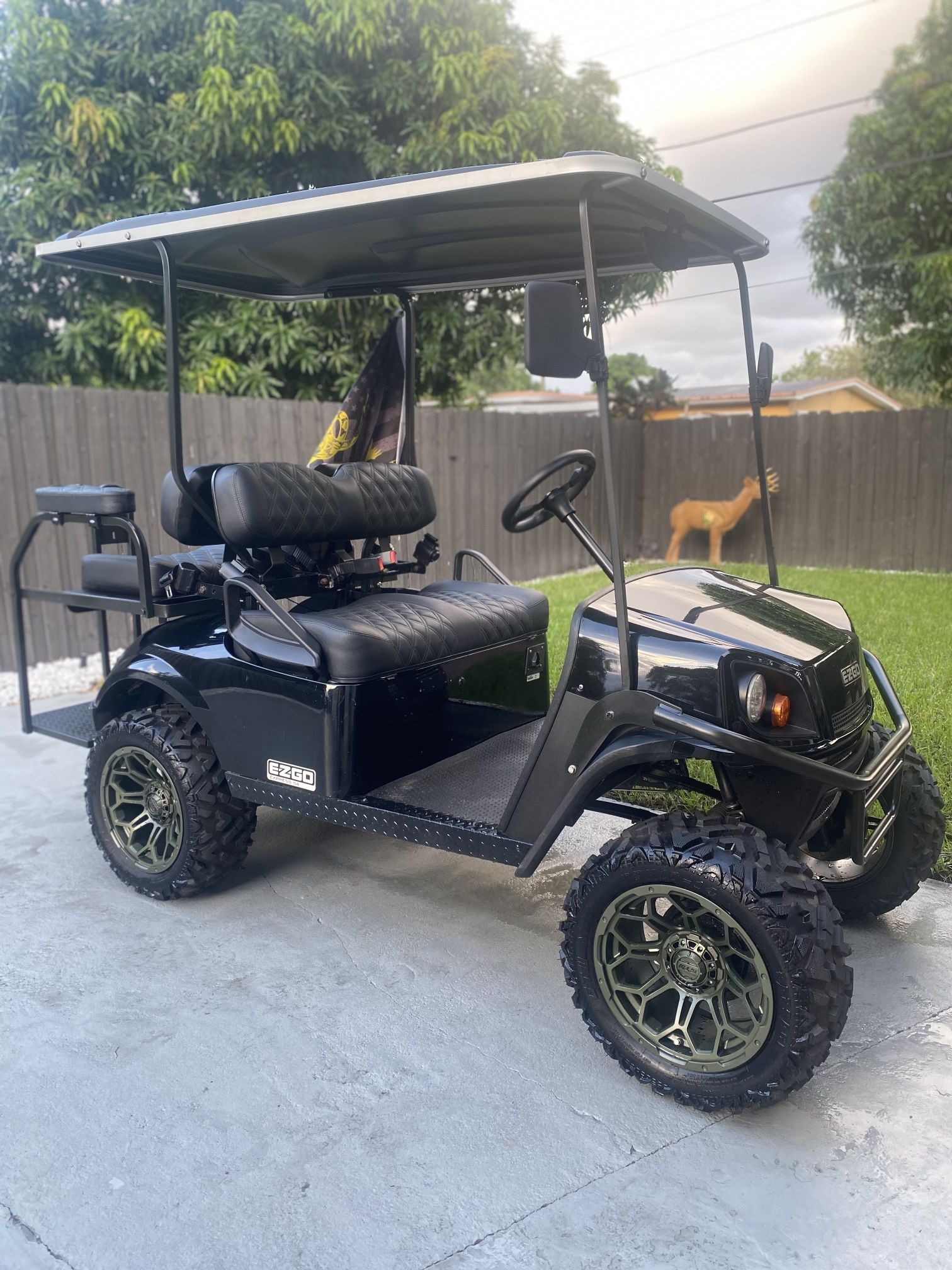 Well maintained,covered 2015 EzGo 48 Volt S4 Electric Golf cart. Upholstery,Batteries, lights, wheels and electric new from 2023. Runs great! Re-programmed 22mph. Everything works as it should. Comes with charger and full golf cart cover