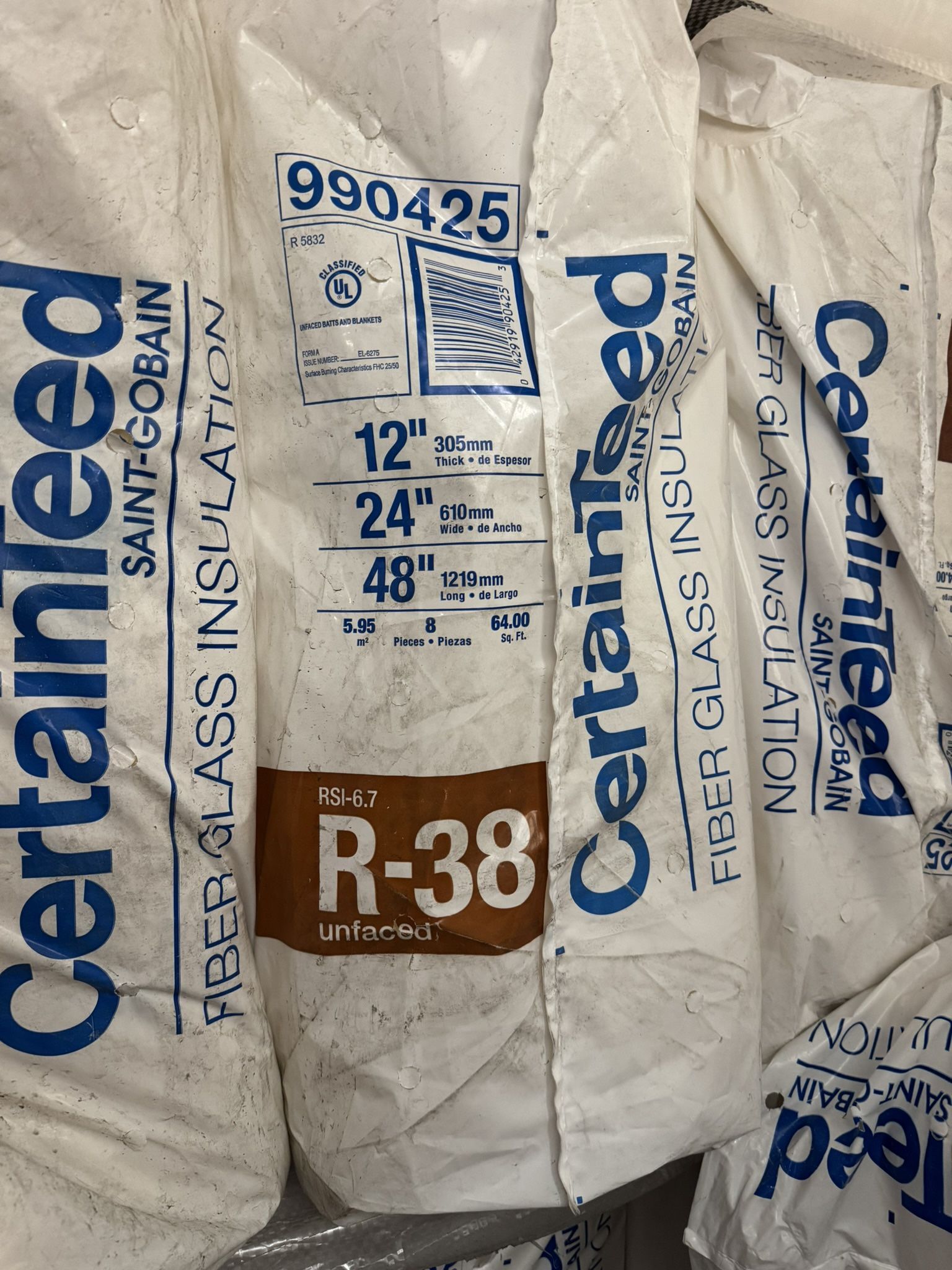 R38x24 Insolación para cielo R38x24 - cubre 64 sq/ft por bolsa precio $80 - sin papel Insulation for ceiling R38x24 - covers 64 sq/ft per bag $80 each - Unfaced