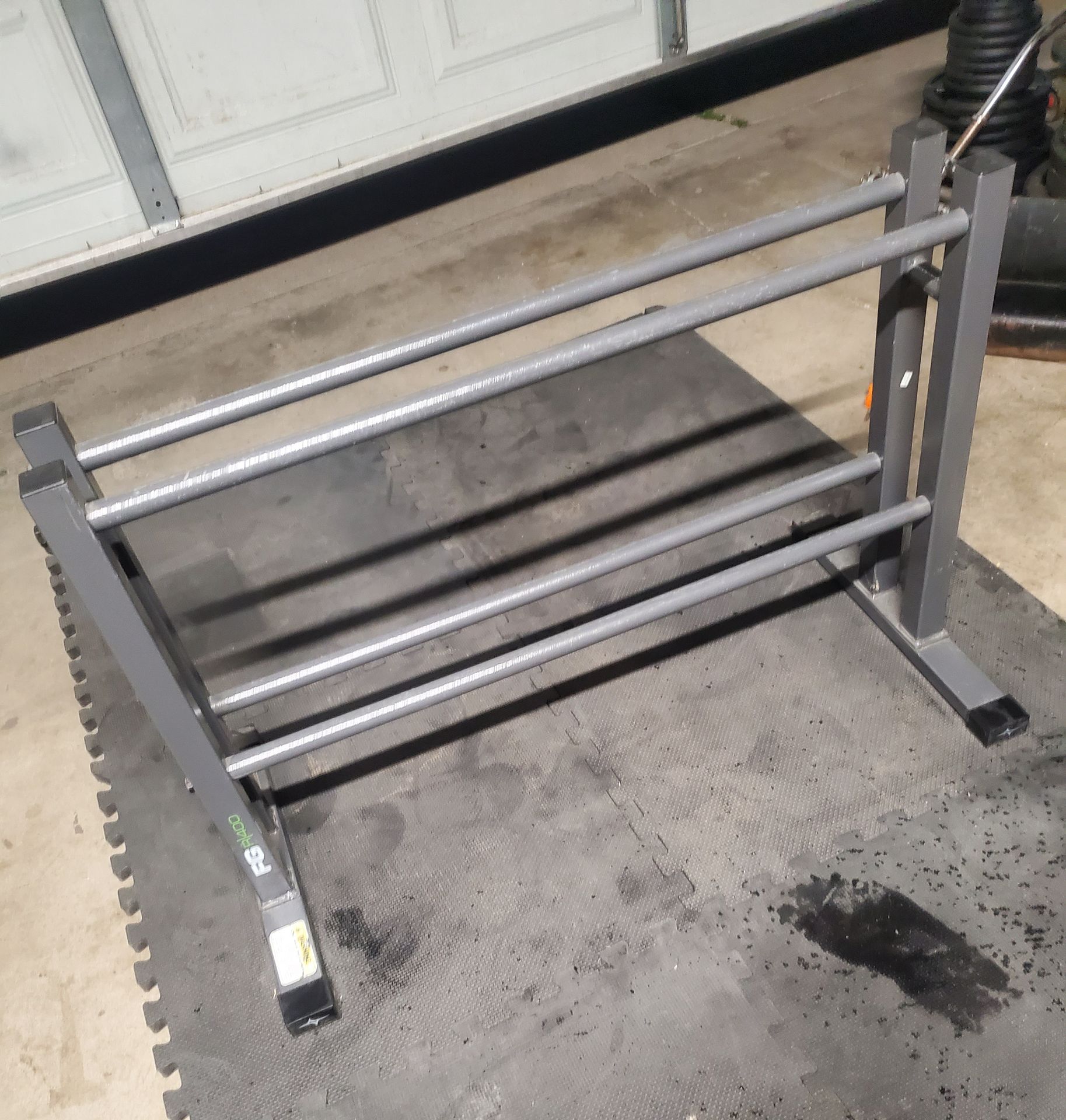 Dumbell Rack holds up to 450lbs Base is 19" Deep x 34.5" Wide. Below Retail Price