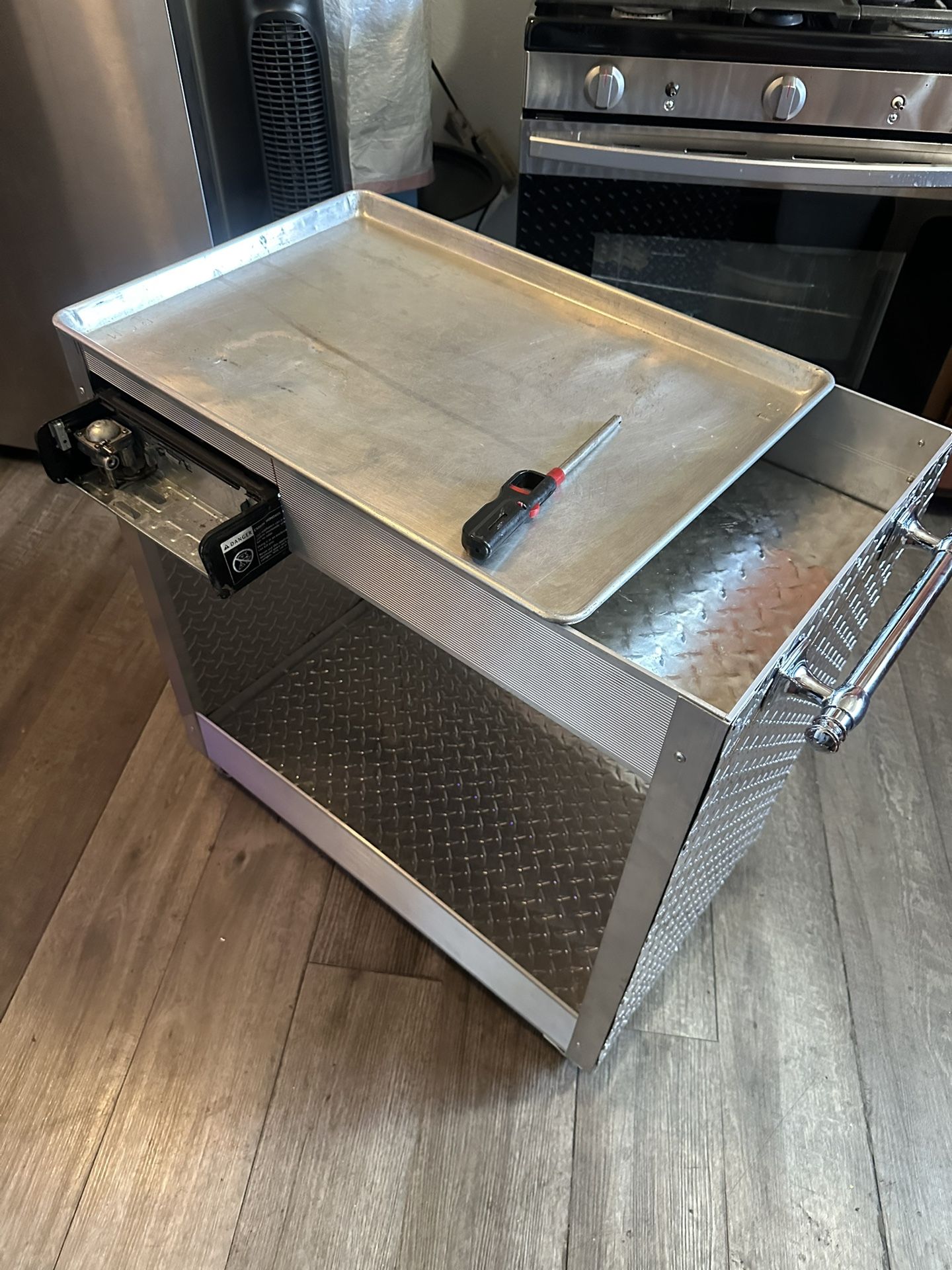 Easy and inexpensive business to start off. Good quality hotdog cart for any occasion. Wheels lock to stay in place. Comes with mini stove attached. Don’t miss out. If you know anyone who is interested in starting a hotdog business we do commission these carts for anyone.
