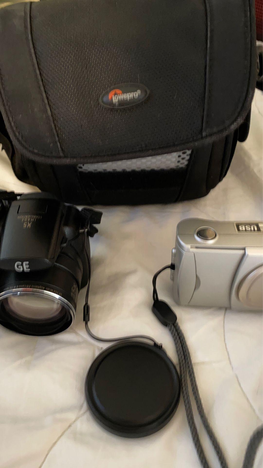 Great set comes with two cameras, necessary bag, cover, & wires / batteries