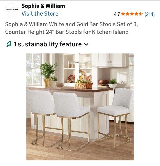 Stylish Set of 3 Sophia & William Barstools NEW! w/Tags - No Boxes Never used or even assembled - Legs still wrapped in foam packaging. Very Easy Assembly Required. Assembly tools and Instruction Manual Included! Price - $300- Retail on Amazon for $375 Description: Durable, Off-white PU Leather, basket weave design barstools w/ elegant, gold polished, premium metal legs frame base- Thick, high density padded seating. 24 in Counter Height- 15"L, 20"W, 34.5"H Seat- 16"L x 16"W *Weight Capacity - 330lbs *Available for Pickup in the Irving area. Delivery possible-ONLY to safe, central location in DFW area. *Cash or Venmo Accepted.*