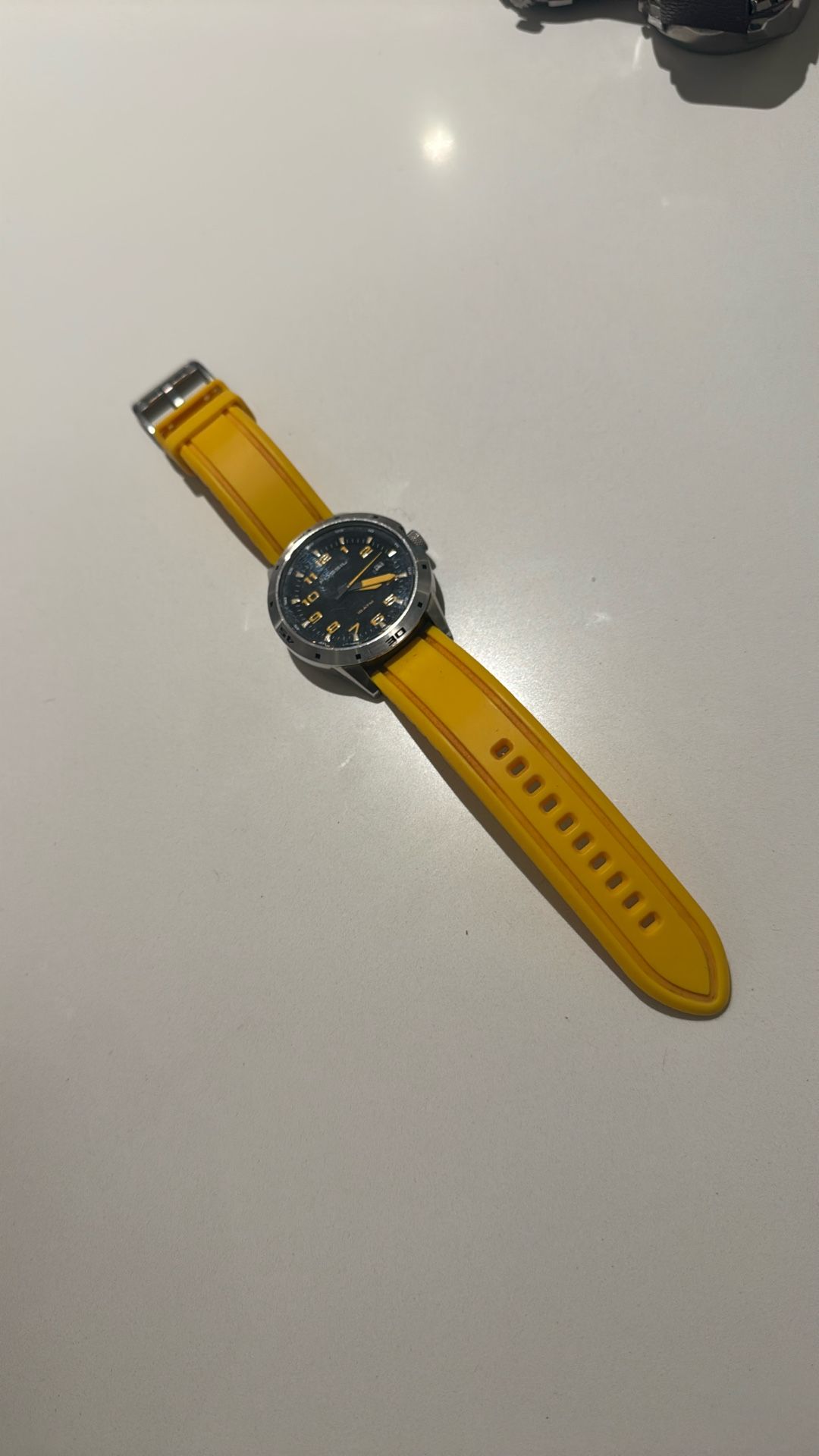 Fossil watch with a vibrant yellow silicone strap, in excellent condition. It’s a standout accessory to add a pop of color to your style. Fully functional. No original box included.