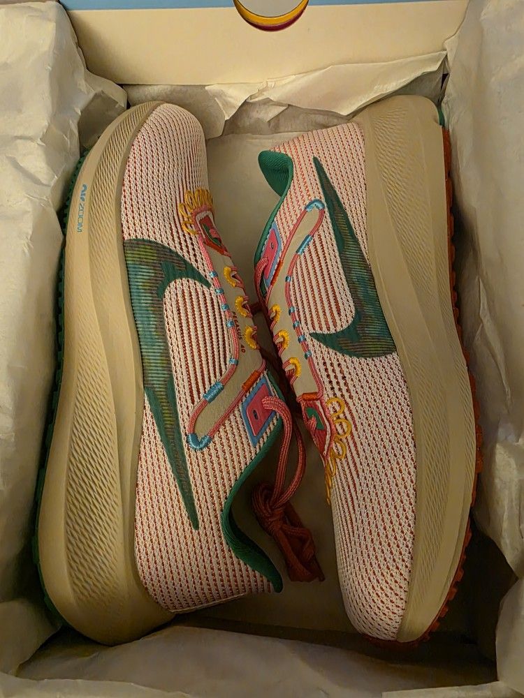 The Nike Air Zoom Pegasus 40 Familia is a stylish and comfortable athletic sneaker designed for men. Featuring a breathable mesh upper material and Nike's signature Air Zoom technology, this shoe provides cushioning and support for all-day wear. The color combination of Sail/Stadium Green/Sanddrift with subtle pink accents adds a touch of style to the classic sneaker design. With a release date of September 28, 2023, this shoe is part of the Nike Air Zoom product line and is sure to be a popular choice for those looking for both fashion and functionality in their athletic footwear.