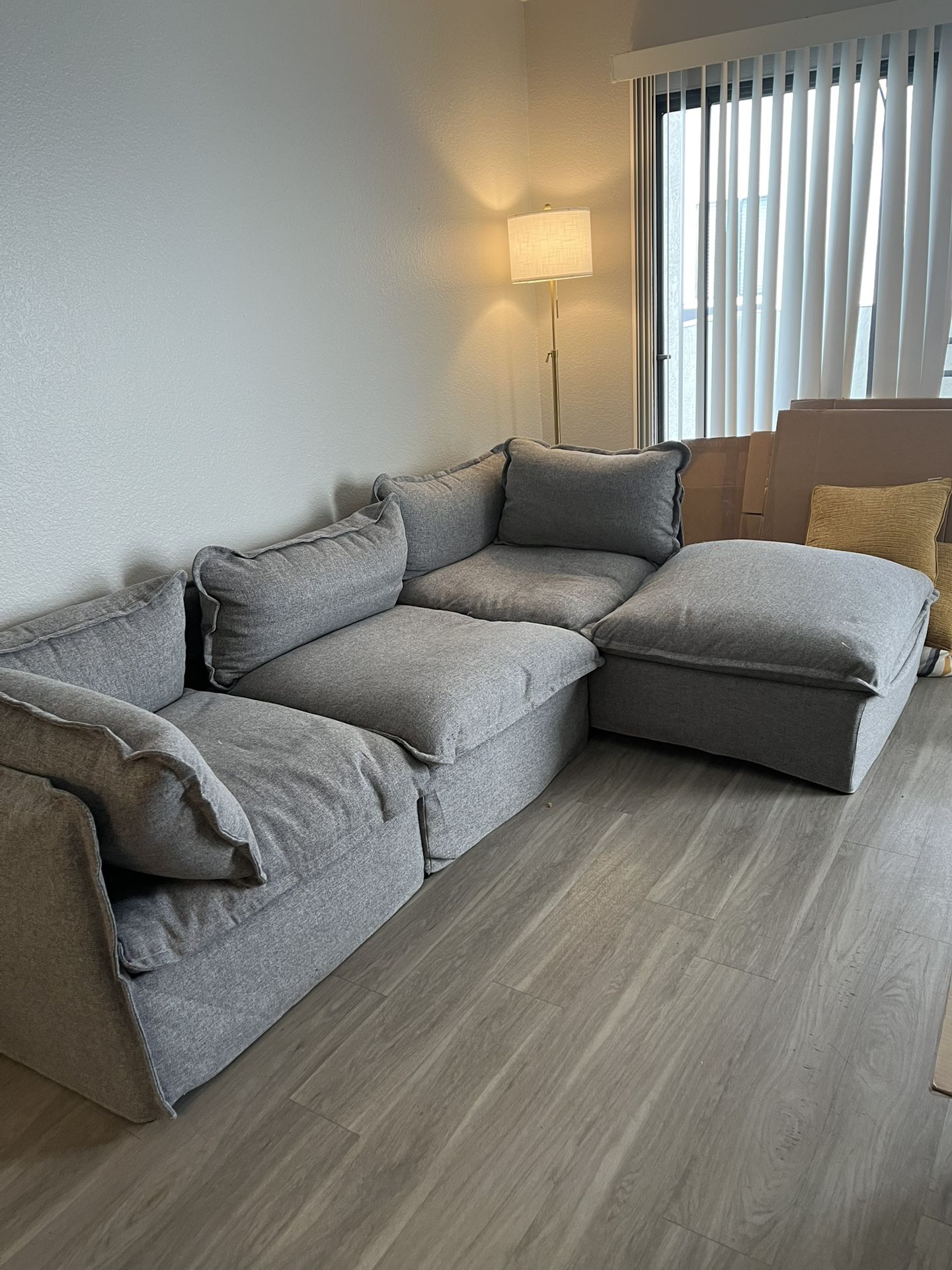 Dark grey Anabei couch, 3 piece + chaise. Open to lower offers. Moving and need this gone