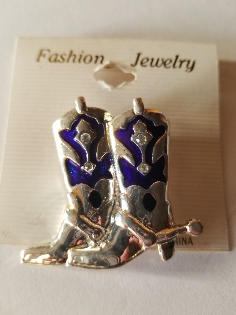 This is a pair of blue and silver cowboy boots. This is a pin/brooch. The item is new never used. This is fashion jewelry only. I have included the measurements in the photos. Feel free to make me an offer. MOUBx3BBgE