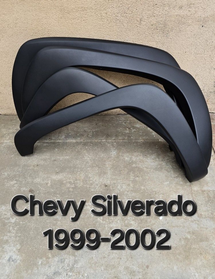 Car Accesories and More Tail Lights Fender Flares Universal Racing Seats Catback Exhaust System Radiator Grille LED Bulbs Front Bumper Lip Trunk Wing Spoiler !!FOLLOW MY PAGE FOR MORE PARTS!! Set of Fender Flares for a Chevy Silverado 1999 , 2000 2001 2002 2003 2004 2005 and 2006.