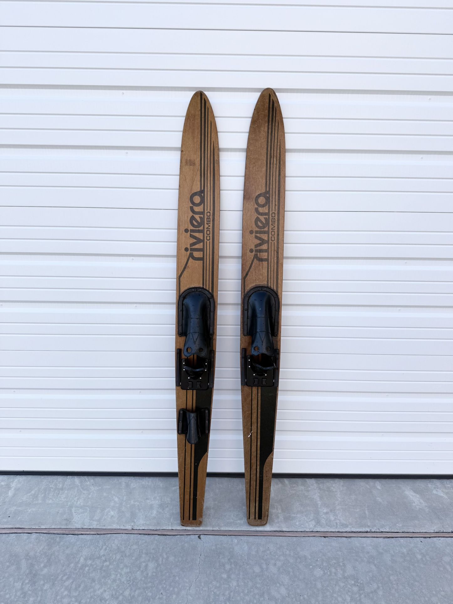 Vintage 67” Wooden Water Skis Riviera Combo Pair Very Good condition does show age as you would expect Be sure to take a look at all the other water skis I have listed for sale. Pick up in Deer Park, TX 77536