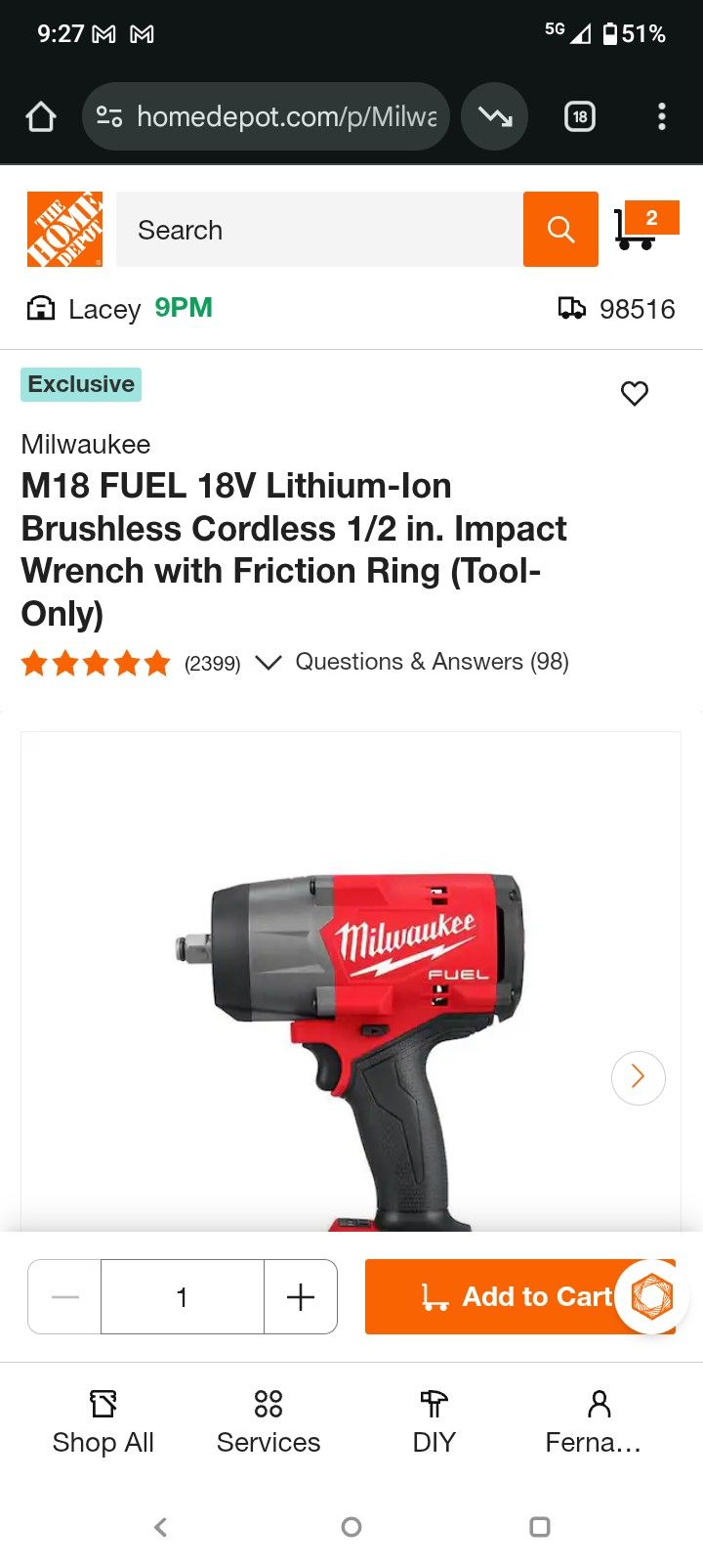Milwaukee M18 Cordless 1/2in Impact Wrench