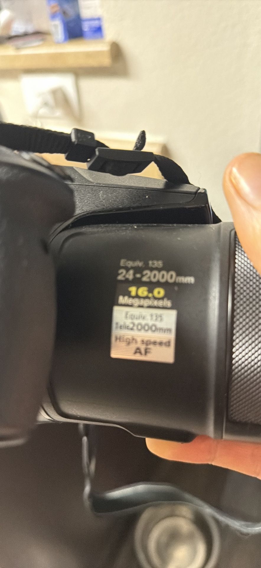 Nikon COOLPIX P900 camera for sale. This camera is equipped with an 83x optical zoom and 16.0 megapixels. It has a NIKKOR lens, making it ideal for capturing high-quality images at a distance.