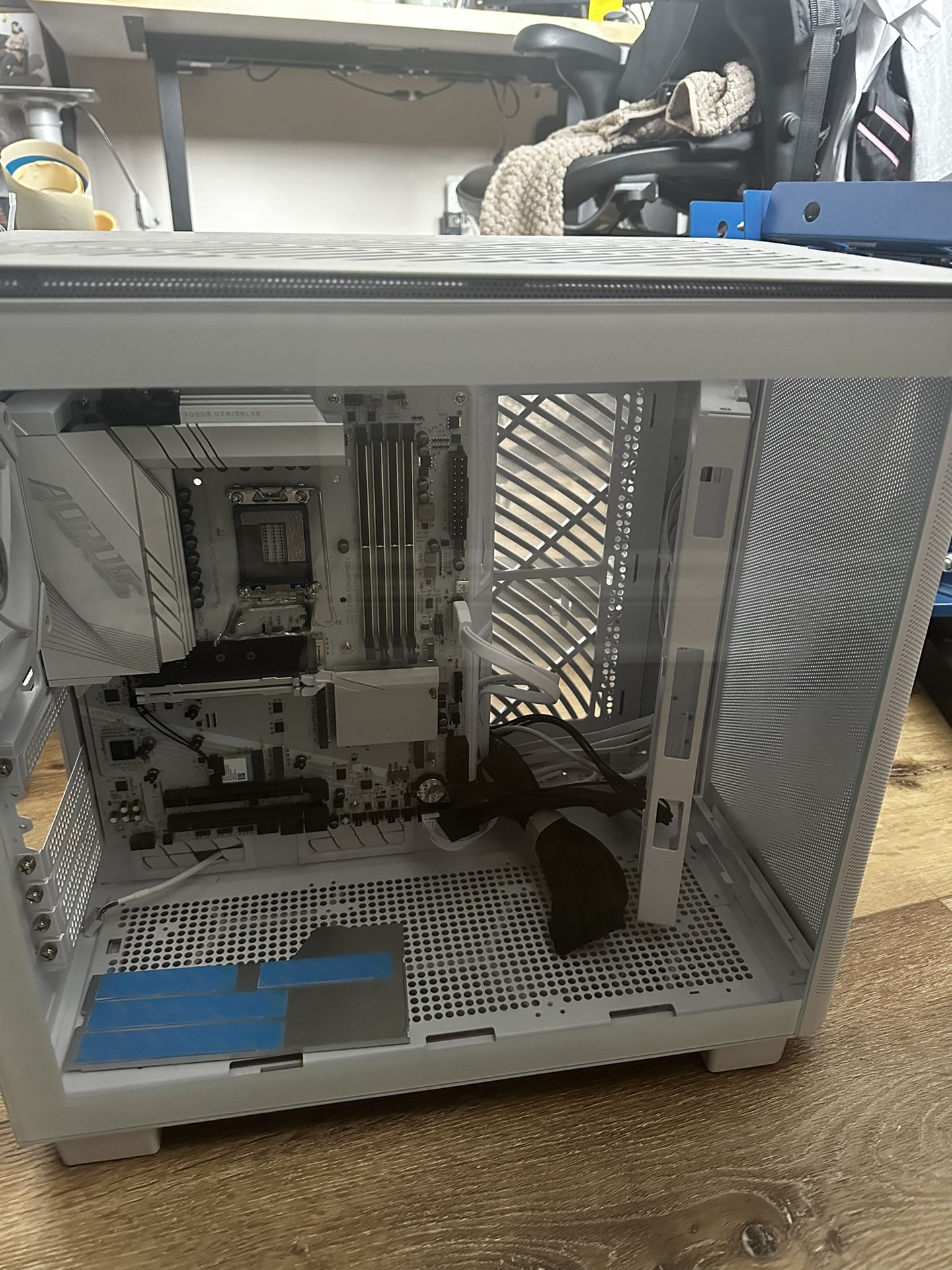 White PC case + Mothetboard from MicroCenter. HARDLY USED. Great condition. Comes with an additional glass panel to give it a “fishbowl” effect