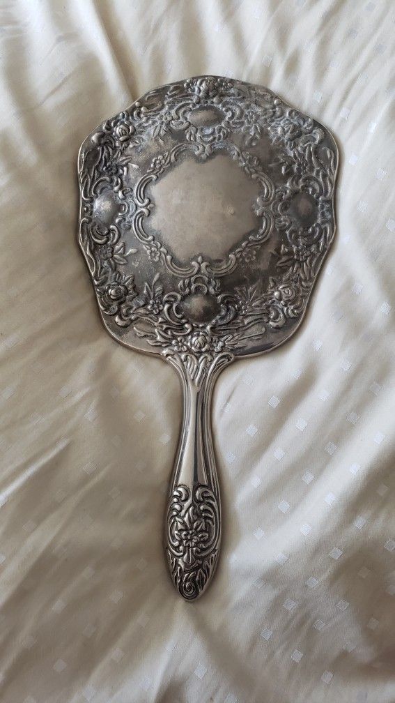 Silver Antique Vintage Hand Held Vanity Mirror