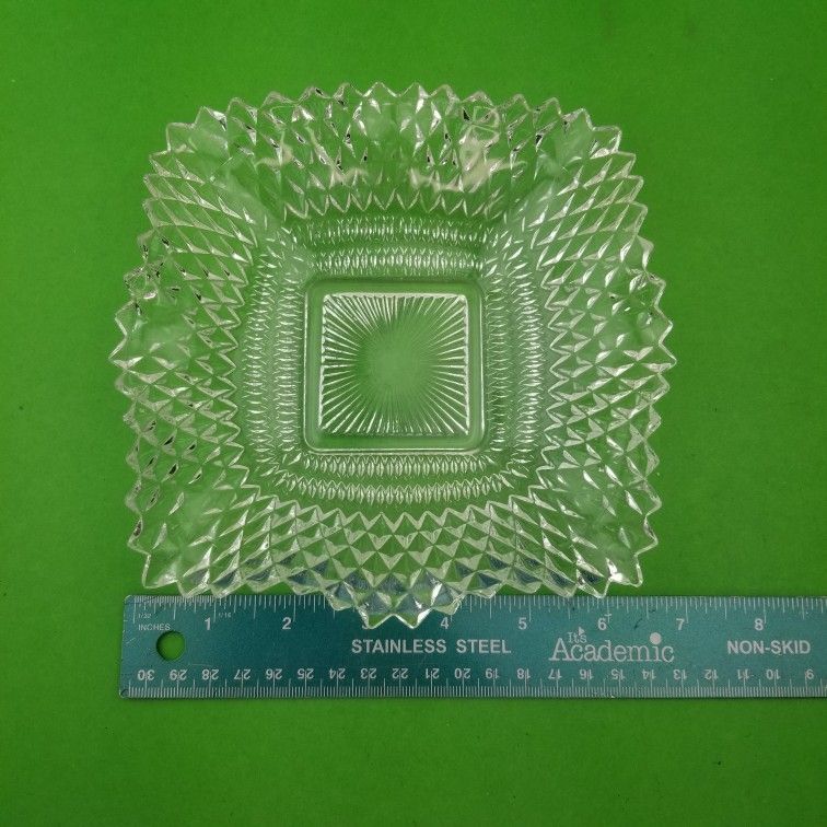 Crystal Diamond Cut Clear Glass Candy Dish or Cigarette Ashtray 6.5 inch. No chips or cracks.
