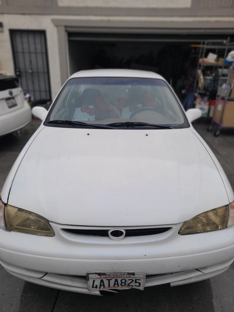 White 1998 Toyota Corolla CE 4 door sedan, 158,623 miles, cold A/C, P/W locks, P/W windows, new tires, new battery, needs new registration, on Non-Occ status, low miles for the year.