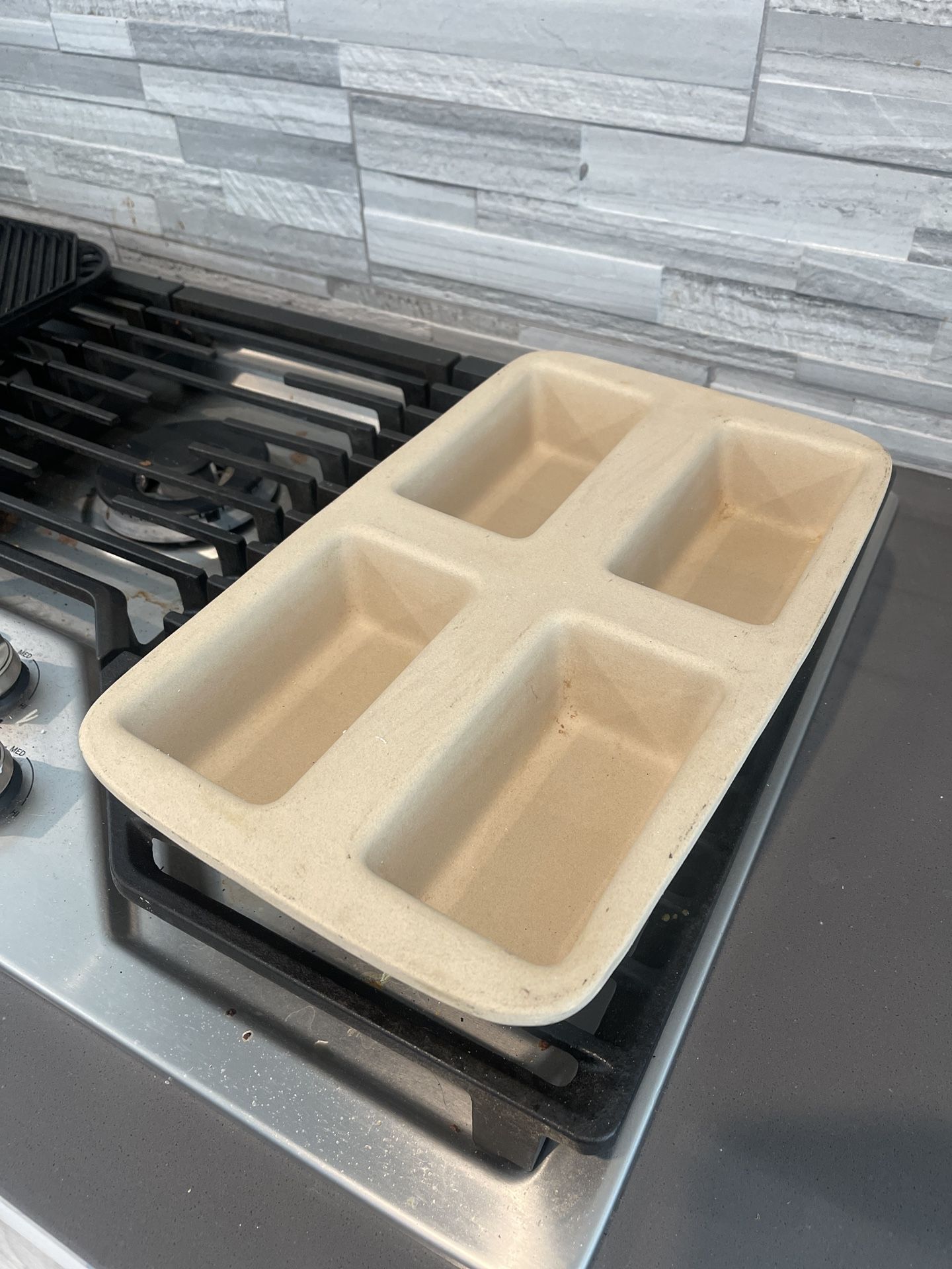 The Pampered Chef Family Heritage StoneWare Classic Edition 061107 Tan Loaf Pan 15.25 X 9 inch. 4 Mini Loaf In perfect condition Retails for $150 or more Asking $50 obo