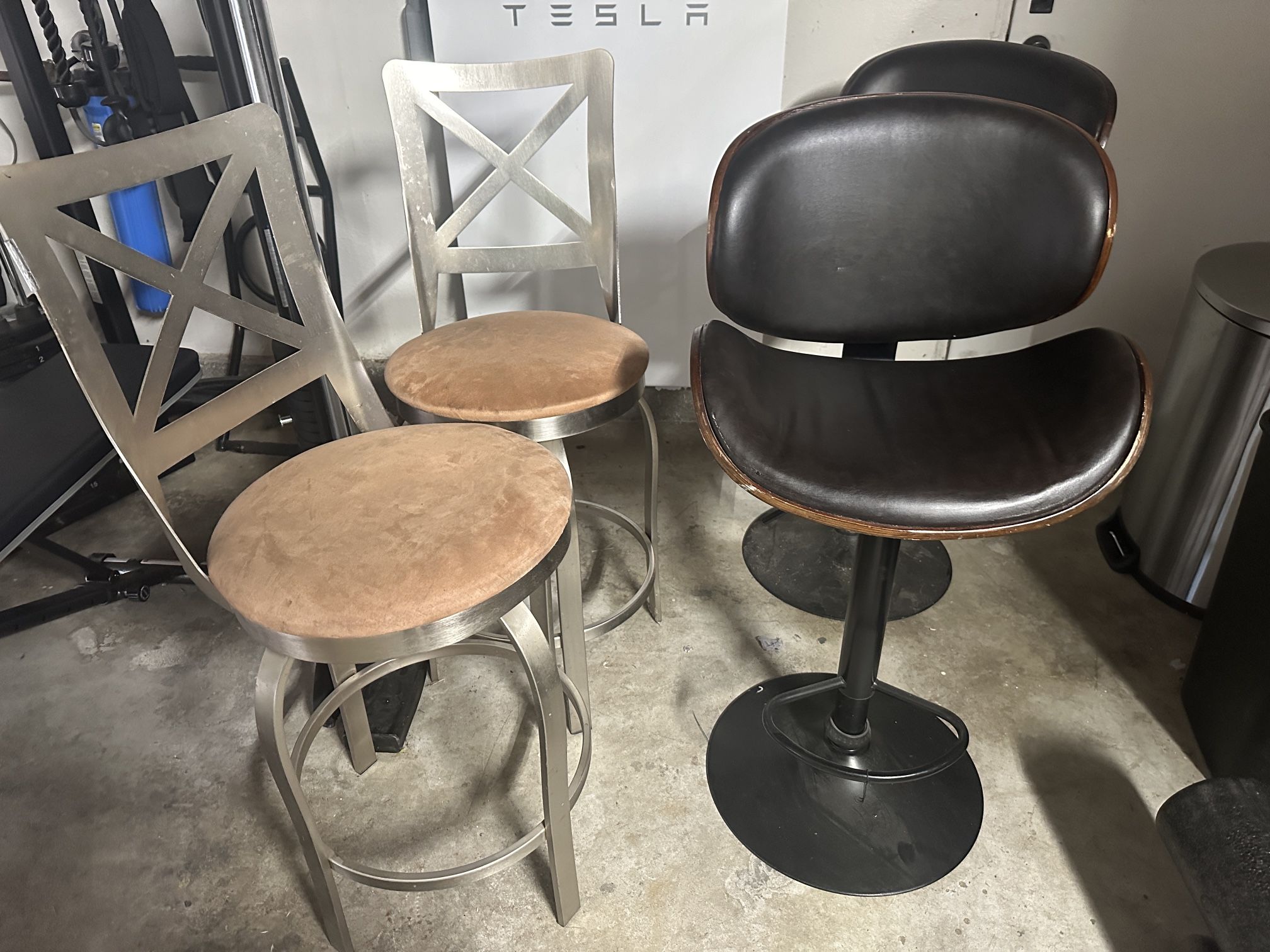 Both seats spin at the top and the silver pair are made out of steel. Steel set - $40 Black chairs - $25