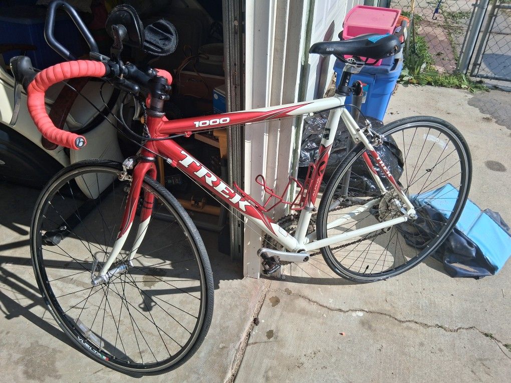Great shape, was ridden from Rosarita to Ensenada and other rides. Light weight, 54M height. Also have a trainer that can go with. Also have clip shoes women's size 7.5