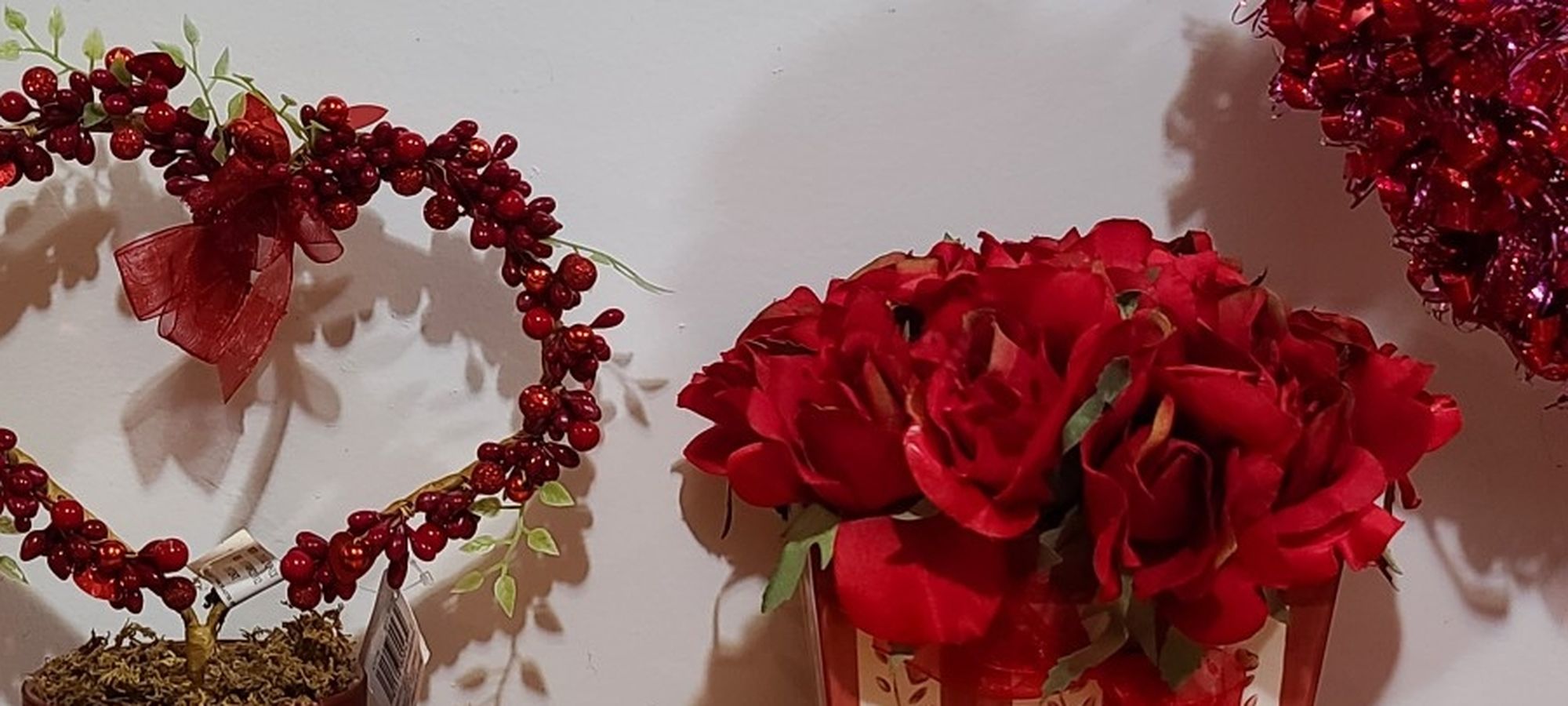 $5 each or all for $20 1st single pic circle round vase " high 2nd beaded heart 11" new with tag 3rd pic roses square vase 9" 4th pic tinsel heart 17" new with tag Pick up only Cash only Please