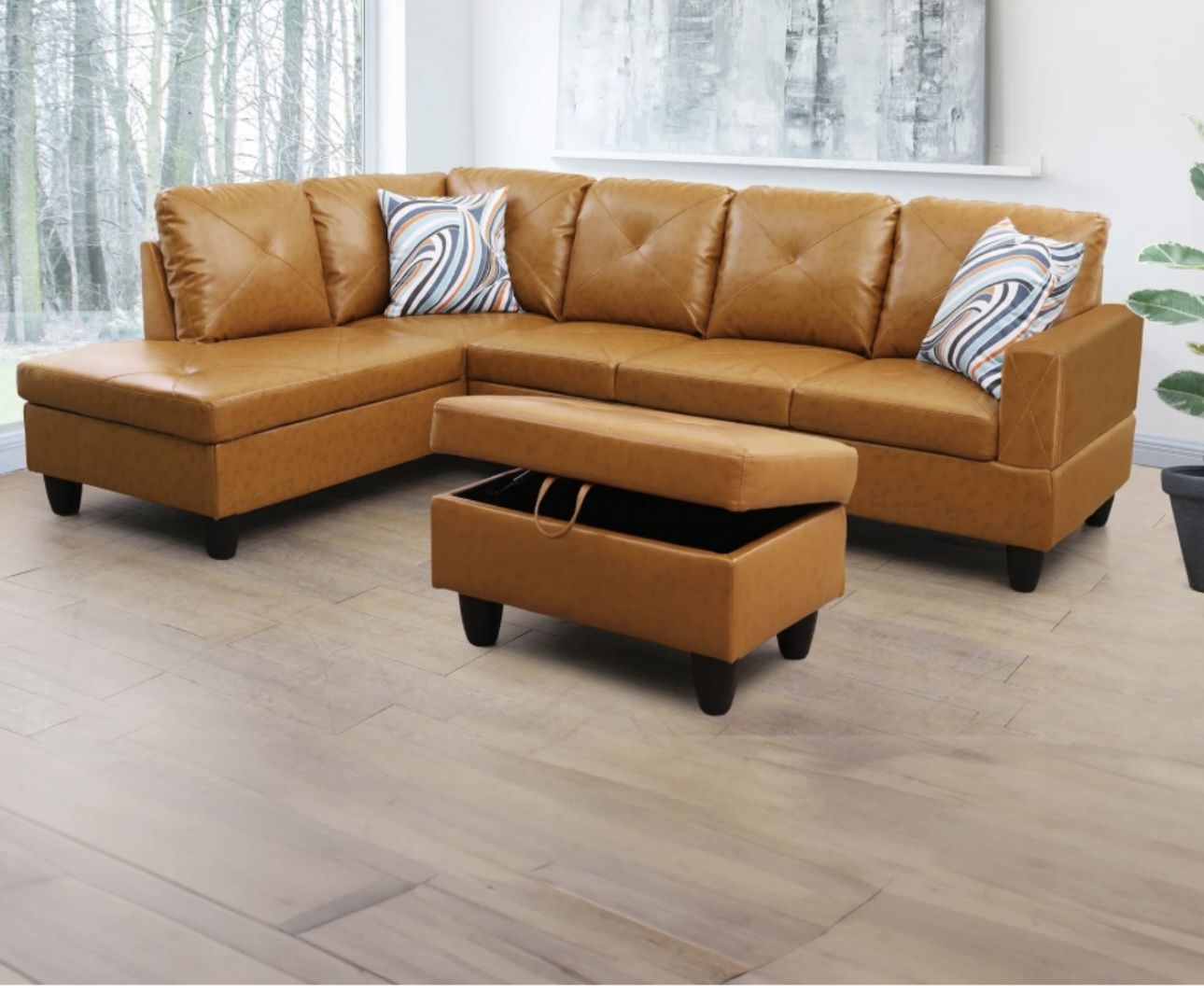 Carmel Leather Sectional Couch And Storage Ottoman