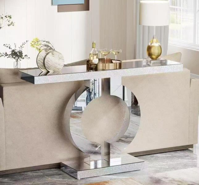 New assembled Modern Mirrored Console Table, Glass Sofa Table with Mirror Finish, 43-Inch Entryway Table with O-Shaped Base, Rectangular Accent Foyer