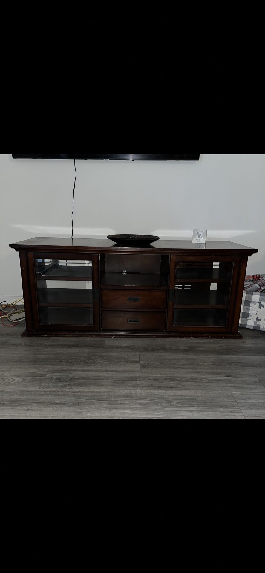 100% Mahogany Wood Heavy Entertainment Center Pick up only In great shape! I have 4 small round legs that are part of this gorgeous center piece!