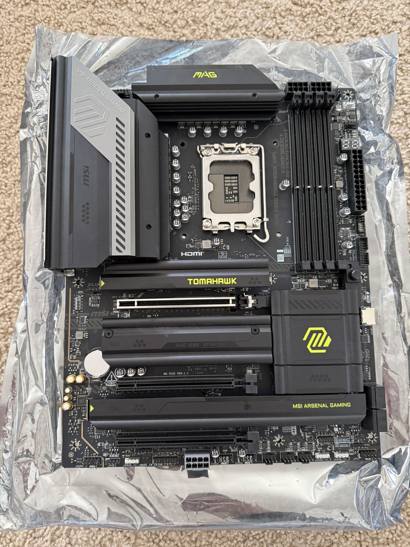 SLIGHTLY USED MSI MAG Z890 TOMAHAWK WIFI LGA 1851 ATX Motherboard The MSI MAG Z890 TOMAHAWK WIFI LGA 1851 ATX Motherboard is a gaming motherboard that supports Intel Core Ultra processors. It has an ATX form factor for enhanced airflow and simplified installation. It also features killer Wi-Fi 7 and 5G LAN, while Thunderbolt 4 offers versatile connection options.