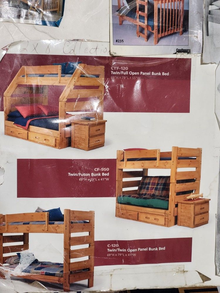 New from Wood Products International! This comes to you as unfinished twin/twin split bunkbed made out of 2x8 pine wood made to last forever! We have 280 collection! Get it @ Mattress Closet!