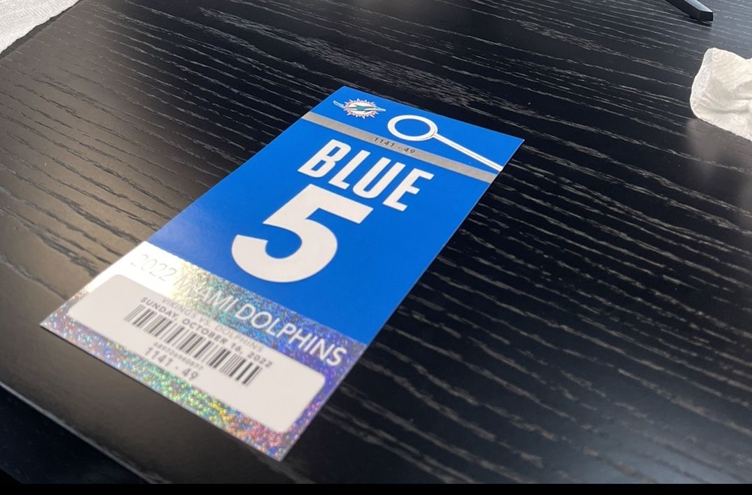 Blue Parking Pass For Dolphins Vs Vikings Football Game