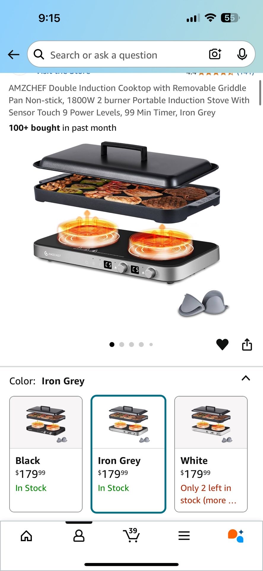 Induction Cooktop 1800W With Cast Iron Griddle Pan