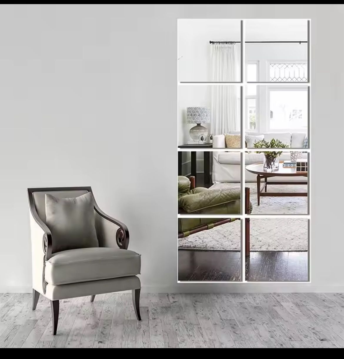 4pcs 20*20cm Mirror Wall Sticker Acrylic Decal Decoration Living Room Soft Plastic Mirror Sheets Home DIY Self-adhesive Mirror